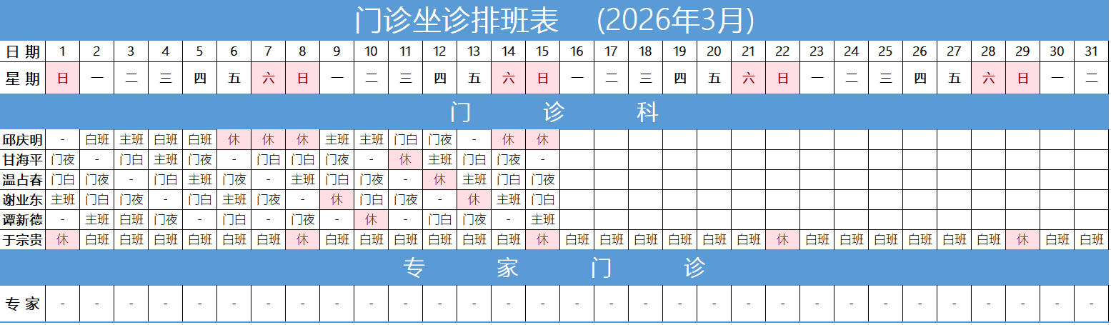 专家坐诊排班表
